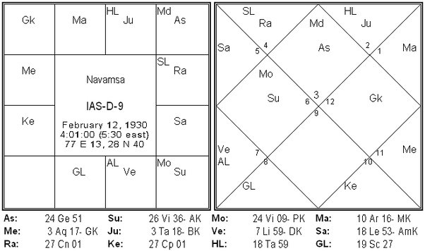 In D-9, Amk is in Leo sign, a royal sign. Moon and Sun both aspecting the 10th house and 10th lord is in 12th house and aspected by 9th lord of royalty. 5th and 6th lord are aspecting each other.