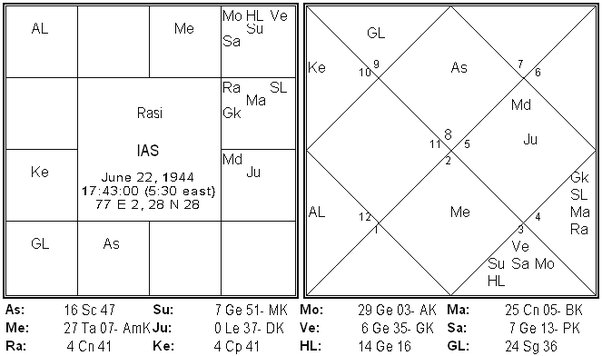 As I stated earlier the royalty of IAS officer or any other government administrative job, the role of Jupiter and Sun becomes very important along with their Sagittarius and Leo sign. These two planets and signs are purely significator of royal things and administration.