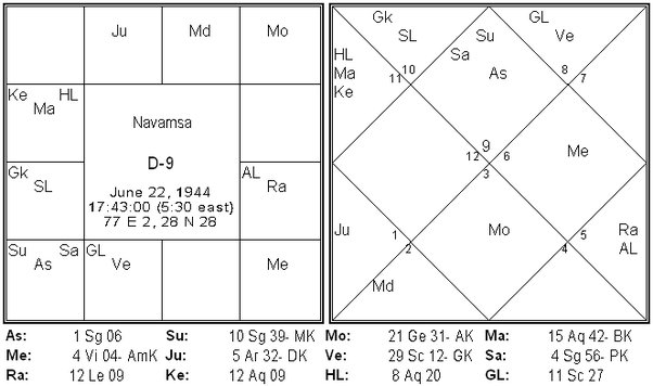 Amk or Amatyakaraka should be well placed & connected with above given conditions. Amk should be well placed from AK or Atmakaraka in D-9 and D-10. Amk should be in Jamini Rajyoga’s.